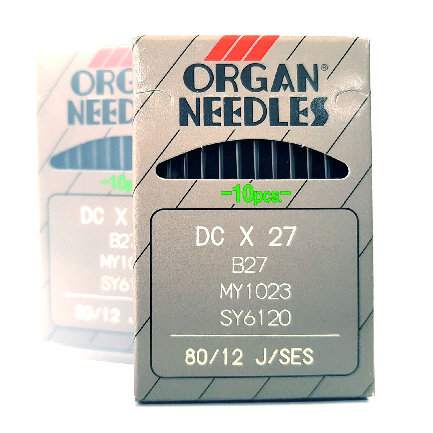 B27 SES Overlock Needles are industrial sewing machine needles with a light ballpoint tip (SES), designed for overlock/serger machines. They are part of the DCx27 / MY1023 system and are widely used in knitwear, jersey, and stretch fabric production.